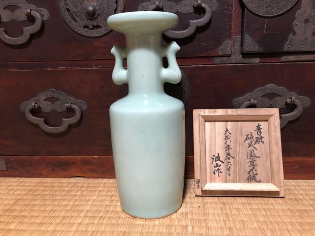 今回のお譲り頂いた作品は青磁の花瓶です。